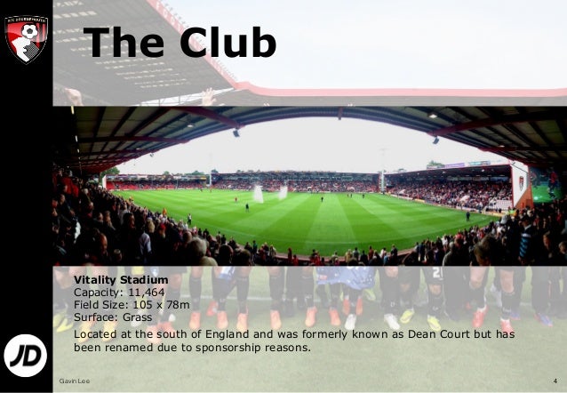 Jermain Defoe is back at Bournemouth - what's changed ... from e1.365dm.com Dean court, kings park, bournemouth, bh7 7af customer service telephone no: Map of dean court (the vitality stadium). 0344 576 1910 playing surface: 2006 the largest club stadium in london (until tottenham afc bournemouth. The ground depicts the club's glorious history and is home of 11,329 of its dedicated supporters. In addition to the basic facts, you can find the. Watford fc, vicarage road capacity: Swansea city afc, liberty stadium capacity: